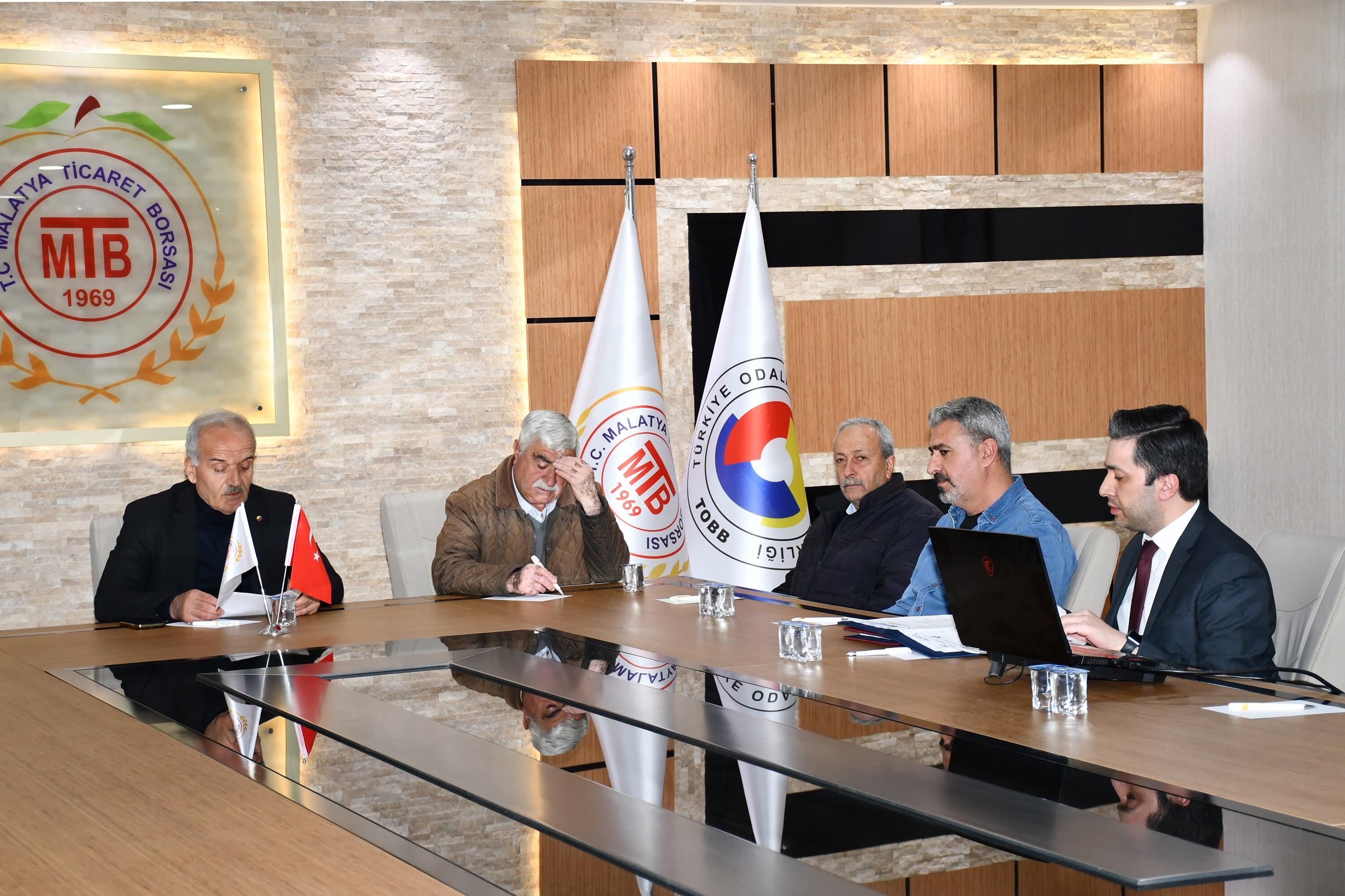 Malatya Ticaret Borsası Aralık Ayı Olağan Meclis Toplantısı, Meclis Başkanı Erdoğan Ünal başkanlığında, Yönetim Kurulu Başkanı Ramazan Özcan ile meclis üyelerinin katılımıyla gerçekleştirildi.